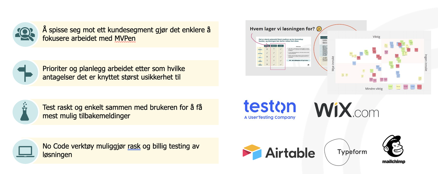 - Harvest the strength of low/no-code tools to create MVPs